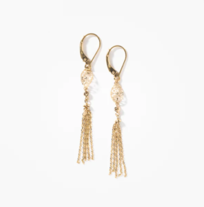 If dresses aren’t your thing, fear not, there is no shortage of glamourous jumpsuits that can suit even the fanciest of parties. The knot-front jumpsuit from Bellissima oozes glamour in classic black. You can elevate the look by adding drop-earrings like the Open Leaf Tassel Drop Earring from Ann-Louise.