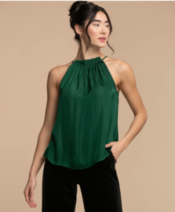 Choose deep green and go for a sleeveless halter from Ricki’s or throw the Evalina Coat from Caposhie over your outfit and voila, oh so merry!